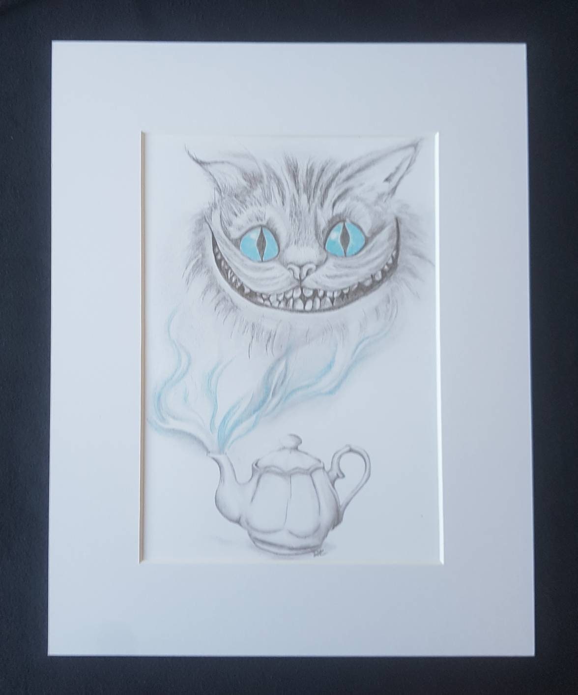 Cheshire Cat Alice In Wonderland Pencil Drawing Mounted Art Print Etsy Uk
